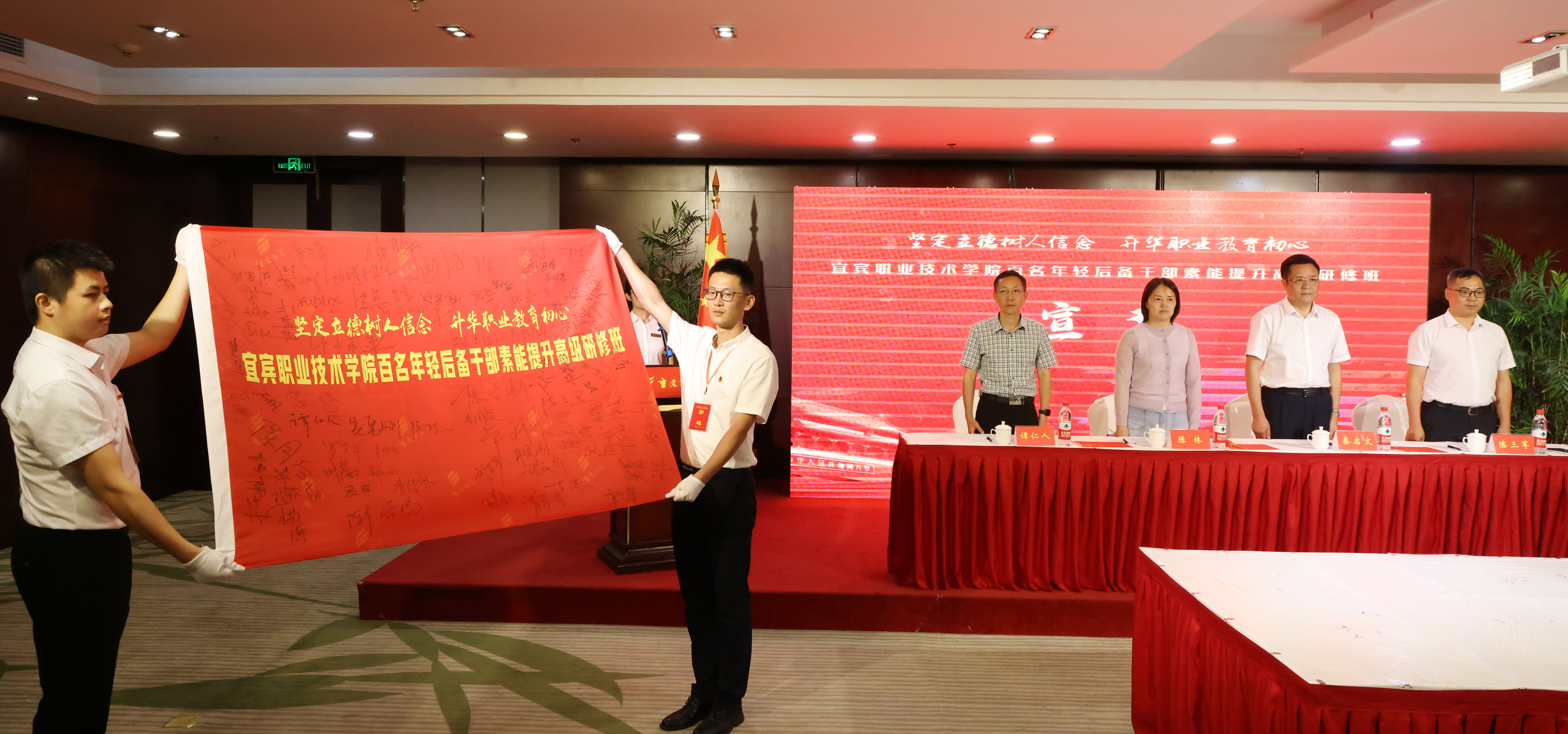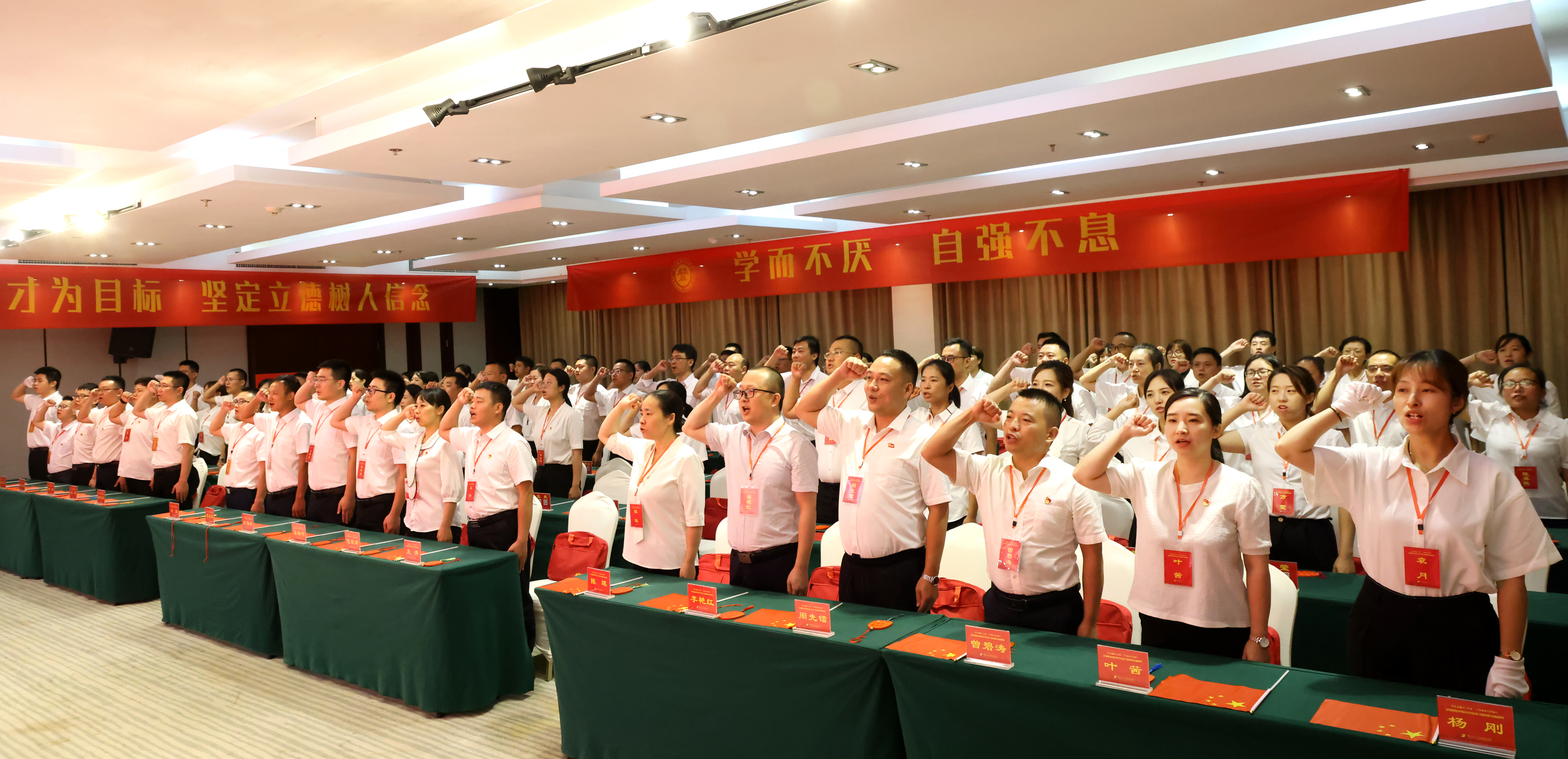 开班仪式上的授旗、签名、宣誓、表决心都体现了全体参训人员学习的决心。伴随着《歌唱祖国》的歌声,为期一周的培训正式拉开了帷幕。