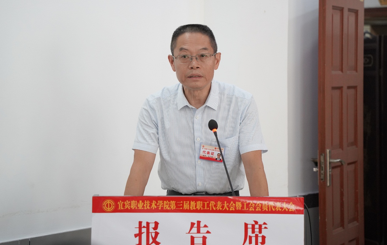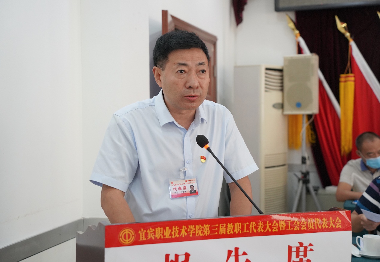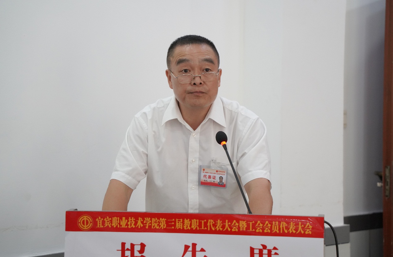 随后,“双代会”代表们认真听取了党委副书记、院长伍小兵所作的行政工作报告;党委常委、副院长江仁朝代表第二届工会委员会所作的工会工作报告;党委副书记、纪委书记陈林所作的《宜宾职业技术学院2021年新增绩效分配方案》说明;党委常委、副院长古文伟所作《关于宜宾职业技术学院整体调迁宜宾国际高职园方案》说明和《宜宾职业技术学院教职工住房保障工作方案》说明。会议还审议了第二届工会经费审查委员会工作报告、财务预算执行情况和2021年预算草案。