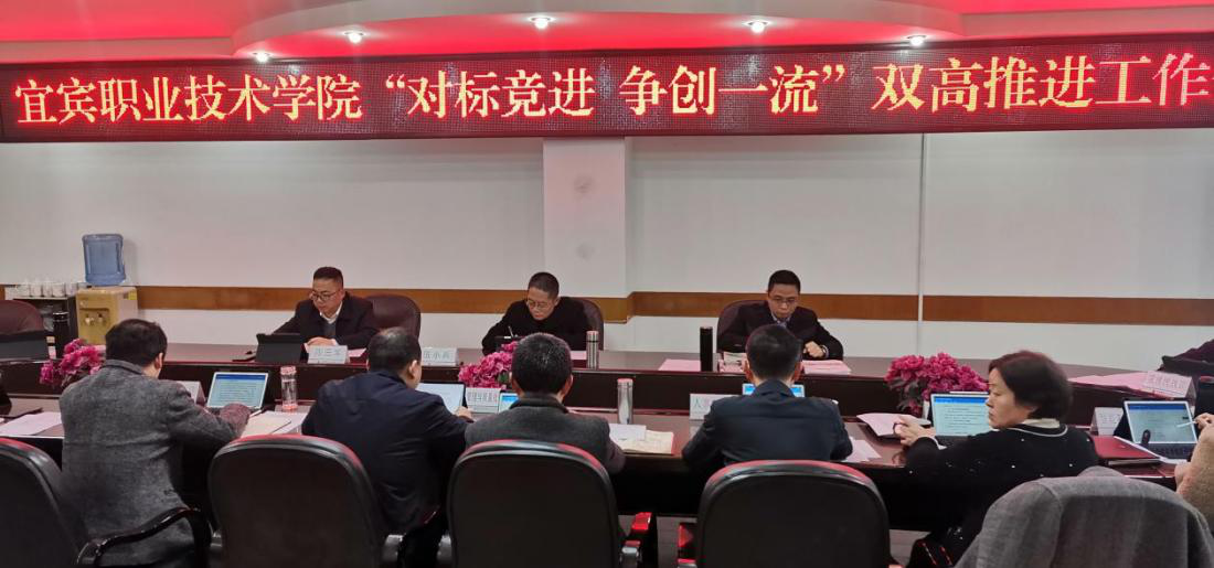 宜宾职业技术学院“对标竞进 争创一流”双高工作推进会议于12月23日上午召开。学院党委副书记、院长伍小兵,党委常委、副院长王志刚,党委常委、组织部部长陈三军,以及相关职能部门和二级学院主要负责人参加会议。会议由学院党委副书记、院长伍小兵主持。