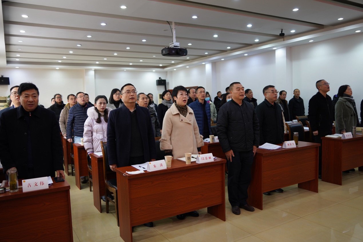 会议在雄壮的国歌声中开幕。江仁朝同志首先向与会代表介绍了召开本次会议的背景事由和拟研究决定的事项。