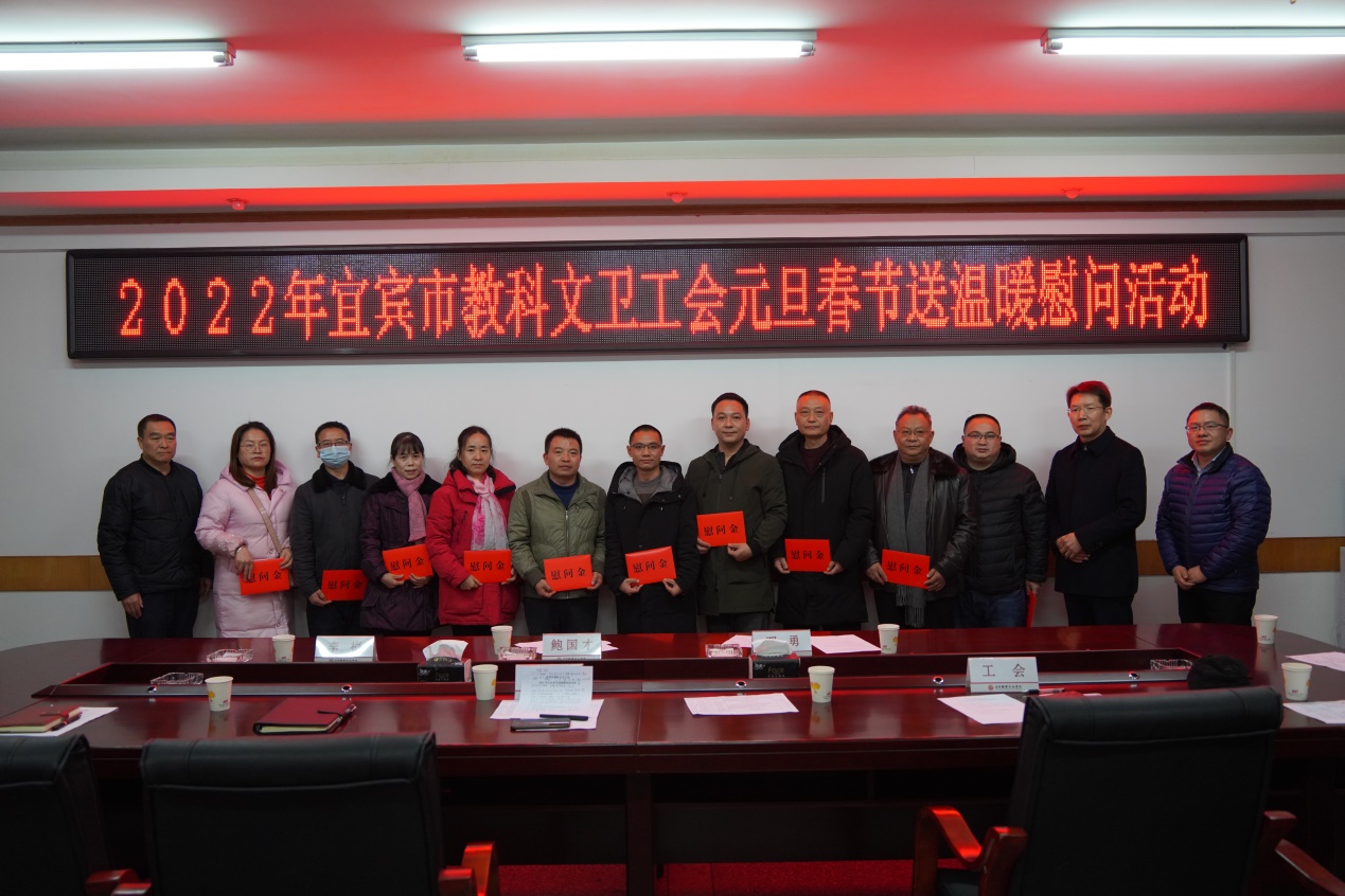 1月12日下午市总工会党组成员、副主席、市教科文卫工会主席鲍国才,市总工会宣教部部长、市教科文卫工会副主席邓勇,市总工会教育帮扶中心副主任李梅等一行4人,代表市总工会看望慰问我院15名教师和劳动模范。党委常委、副院长、工会主席江仁朝同志及院工会相关人员陪同慰问。