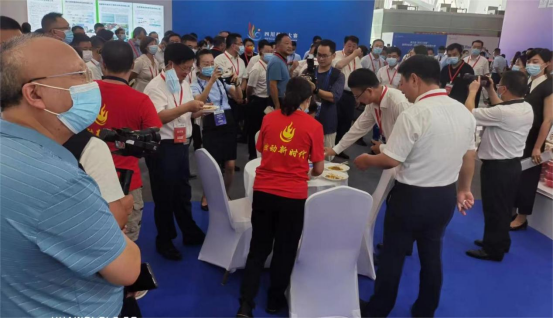 技状元宜宾燃面作为宜宾展区的第一个展位,一方面集中展示了我院研发的方便型、预制(冲泡)型、食堂型燃面产品;另一方面邀请学院客座教授曹祉清大师亲临现场,指导制作,把每一碗燃面系列产品做成精品,受到了与会领导、嘉宾的一致好评,成为了展会的一大亮点,宜宾电视台等媒体给予了直播和专题采访报道。