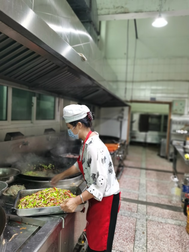 实施静态管理意味着因工作原因留在学校的50多名教职员工、留(返)校114名学生不能离校返家,需要较长时间住学校。学院领导立即指示基建后勤处组织学生到A2区进行集中统一管理,切实做好留校师生员工饮食生活保障。基建后勤处立即签购储备了15天的米、面、肉食、蔬菜等,足以保障其间的基本生活供应。同时,按照“食品安全化、菜品多样化、价格便宜化、改进及时化”原则,切实改善伙食,做到确保在校学生及因防疫工作坚守岗位的相关人员每日三餐供给,使其安心接受静态管理。