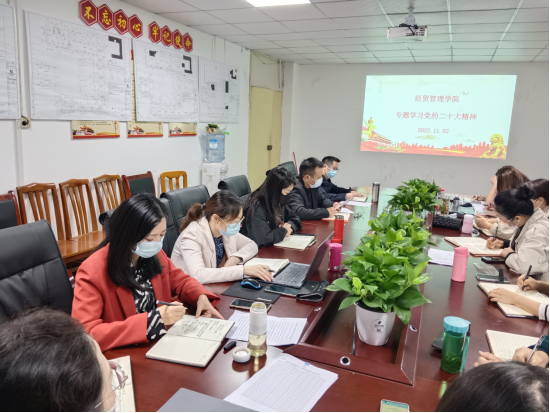 11月2日上午,经贸管理学院党总支在党团活动室召开学习党的二十大精神专题会议。