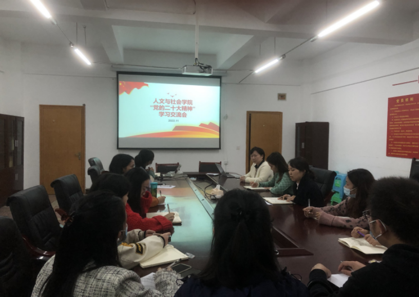 11月4日,人文与社会学院党总支组织全体教职工在518党团活动室开展了“党的二十大精神”学习交流会。