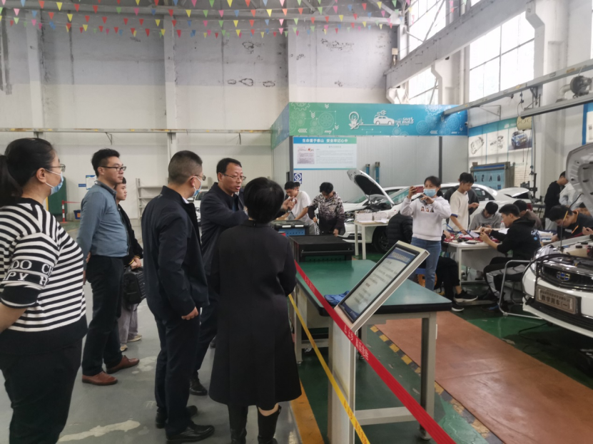 随后,专家组与部分试点二级学院教师及学生代表就我院1+X证书制度试点具体开展情况开展了座谈交流会。同时,专家组仔细查阅了试点工作材料,并到汽车与轨道交通学院、文创与旅游学院、建筑与环境学院实地考察了试点教学场地、实训基地及考核站点建设情况。
