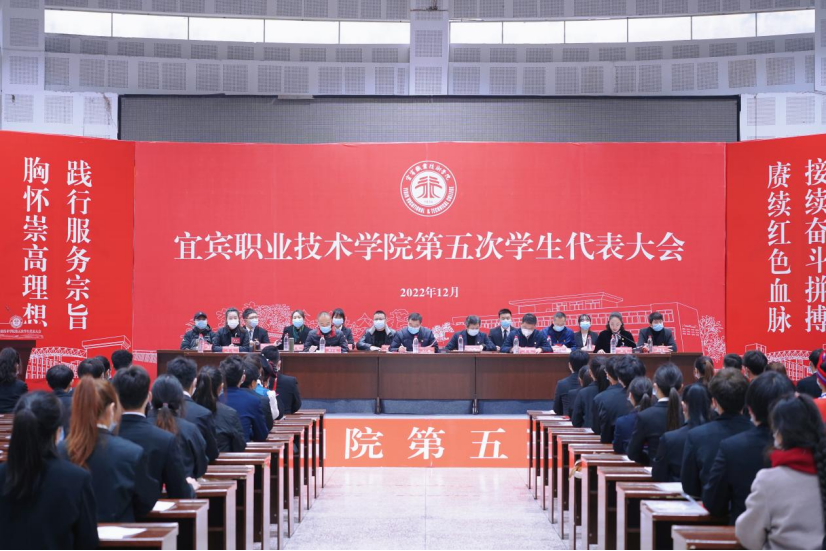 为深入学习宣传贯彻党的二十大精神,引领广大宜职院青年坚定永远跟党走的理想信念,切实把思想和行动统一到党的二十大精神上来,充分发挥学生会服务青年学生的作用,12月13日,宜宾职业技术学院第五次学生代表大会在B区学生活动中心胜利召开。共青团宜宾市委书记黄春,学院党委常委、副院长江仁朝出席大会并讲话。学院学生工作部、各二级学院党总支、团总支负责人,151名学代会代表、46名列席代表出席大会。开幕式由学院团委副书记陈月主持。