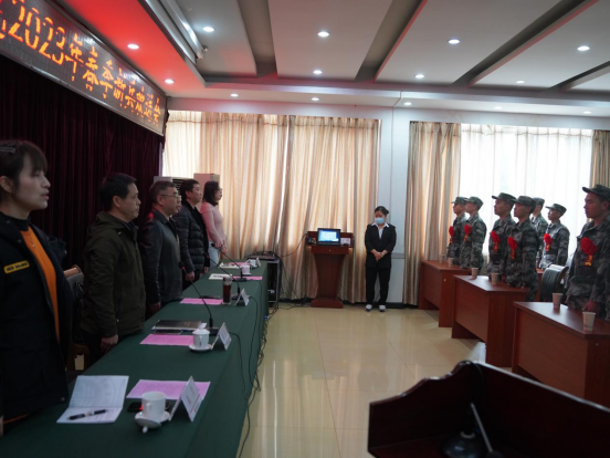 林世全代表学院党政向新兵战士们表示衷心的祝贺,并提出殷切期望。他指出,在新时代新征程上,要成为优秀的人民解放军战士,应当加强斗争精神和提高斗争本领,着力在五方面下功夫:一是要听党指挥,对党忠诚。忠诚是对军人的本质要求。解放军是人民的军队,要忠诚于党和人民,用心底无私锤炼出钢铁般的意志,切实担负起新时代人民解放军保家卫国的责任。二是要不断提高自我学习能力。要苦练军事本领,努力学习科学文化知识,养成终生学习的习惯,靠真才实学更好为国防和军队建设事业作出新的更大贡献。三是要高标准严要求。军人以服从命令为天职。要养成严谨的工作作风和遵守纪律、遵守时间的良好习惯。磨砺和提高岗位技能,树立更高的人生追求,在五大军种中都要争当出类拔萃的“特种兵”。四是要继续淬炼品格人格。提高认知能力和树立宽广的格局、胸襟,凡事做到能受委屈、能抗打击,自觉加强道德修养,努力成为有灵魂、有本事、有血性、有品德的新一代革命军人。五是要走正步,每一步都要走稳。军人肩负着保家卫国的神圣使命。要始终做到心中有党、心中有国、心中有民、心中有戒,对肩负的使命竭尽全力,为党、为人民、为母校、为父母争得更大光荣!