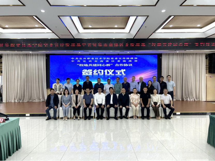 为深化校地统战合作,构建校地统战发展共同体,推动新时代统战工作高质量发展,4月13日下午,学院党委宣传统战部与南溪区委统战部在南溪区会议中心隆重举行校地共建“同心桥”签约仪式。宜宾市委统战部副部长、市侨联党组书记刘万明,学院党委常委、副院长朱涛,南溪区委常委、统战部部长、区政协党组副书记王财波出席签约仪式并讲话。