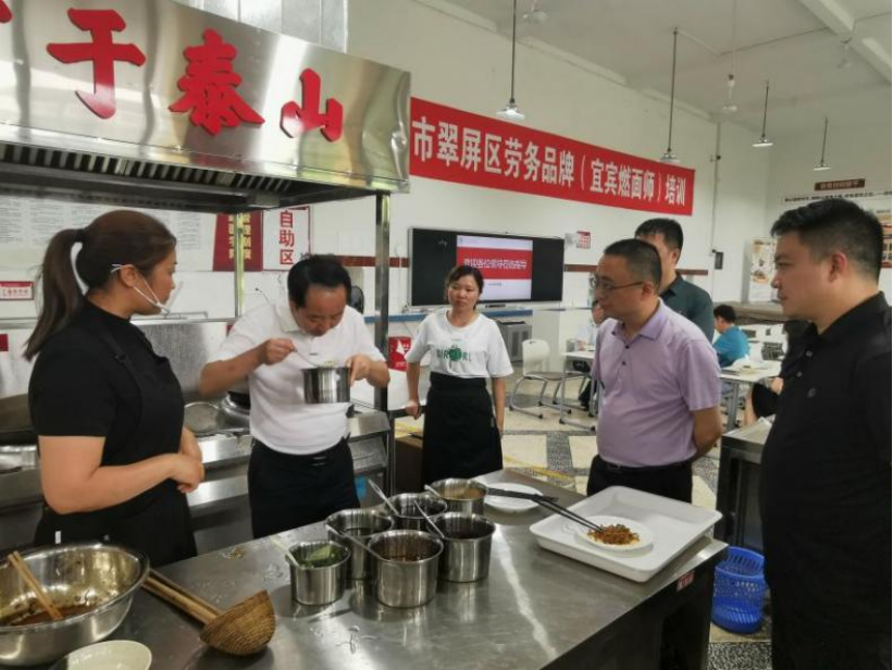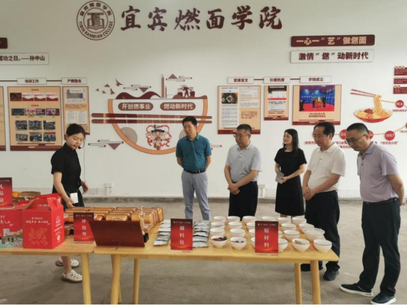 7月6日,市总工会党组书记、常务副主席万云江,党组成员、副主席、机关党总支书记鲍国才,办公室主任张琴一行对我院“技状元·宜宾燃面”进行考察调研。学院党委书记林世全,党委常委、副院长朱涛,资产经营管理有限公司董事长刘远东参加调研。