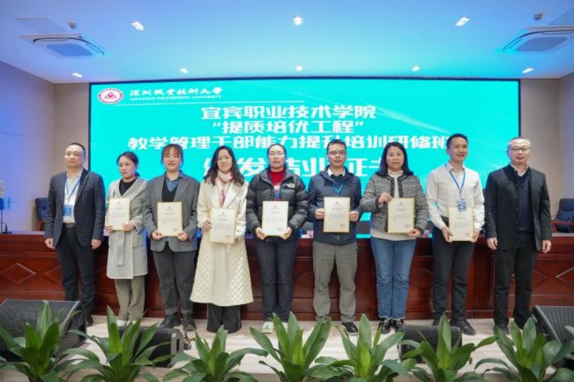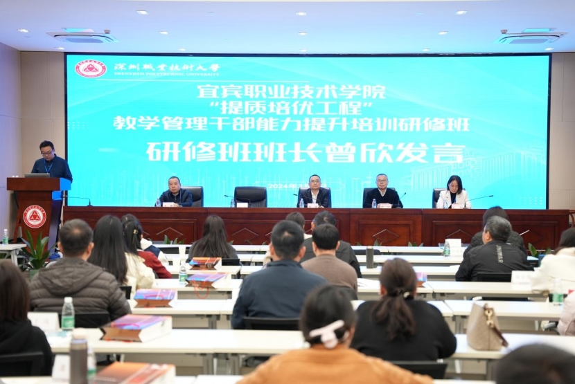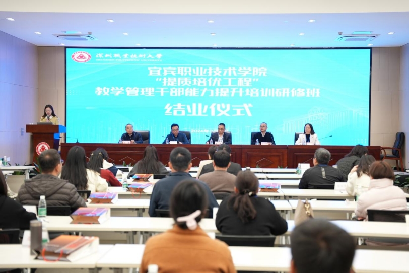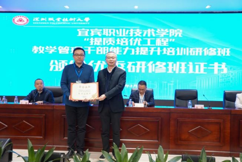 3月1日下午,宜宾职业技术学院“提质培优工程”教学管理干部能力提升培训研修班结业仪式在深圳职业技术大学西丽湖校区隆重举行。深圳职业技术大学继续教育与培训学院院长李凯,学院党委常委、副院长朱涛出席仪式。