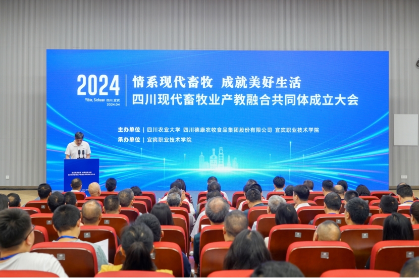 4月20日上午,以“情系现代畜牧,成就美好生活”为主题的“四川现代畜牧业产教融合共同体”成立大会在宜宾职业技术学院召开。宜宾市农业农村局副局长康忠洪,学院党委副书记徐劲松出席会议,学院副院长周黎军主持会议。