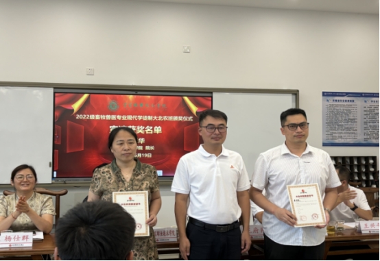 大北农集团、现代农业学院相关人员,2022、2023级畜牧兽医专业大北农学徒制班40余人参加仪式。(现代农业学院供稿)