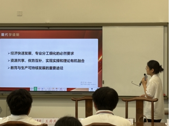 易静现场为大家介绍了大北农集团现代学徒制的人才培养模式与未来职场规划,勉励学员们好好学习。