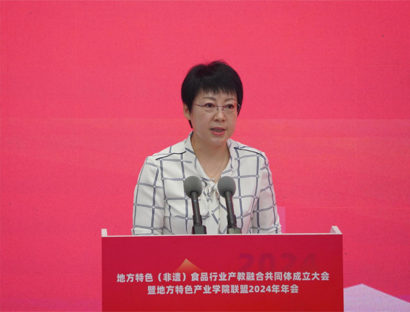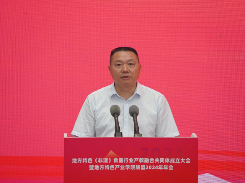 学院党委副书记徐劲松在致辞中表示,成立地方特色(非遗)食品行业产教融合共同体,旨在贯彻落实习近平总书记关于产教融合、校企合作及非遗保护和食品行业发展的论述,推动其向更深层次、更广领域发展,培养高素质技术技能人才,为地方食品行业繁荣提供人才和智力支持。他说,在此合作中,各牵头单位应积极探索行业标准、企业标准与教学标准相融合的地方特色(非遗)食品行业人才培养模式,加快培养高层次技术技能人才,满足行业发展需求。同时,建议联合打造科研攻关团队,建立协同创新机制,围绕地方特色食品行业技术难题及前瞻性需求,深入研究食品科学与工程、生物技术等关键技术。这样的合作不仅能推动技术创新,还能服务企业,为地方特色食品行业提供技术支撑和人才保障。