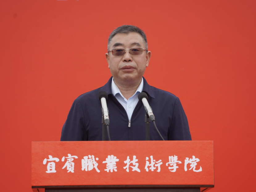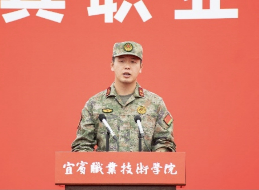 动员大会在雄壮的国歌声中拉开帷幕。江仁朝代表学院宣读《宜宾职业技术学院关于任命张昂等125名同志为2024级学生军训干部的任职通知》,明确了本次军训学生建制,即1个军训团、9个营、63个连,实行团、营、连三级管理体制。