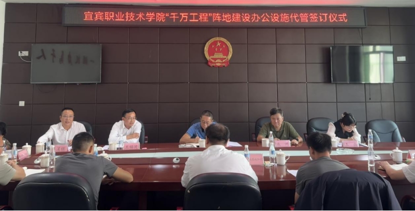 会上,校地双方举行了“千万工程”阵地建设办公设施代管签订仪式和宜宾职业技术学院博士专家工作站授牌仪式。