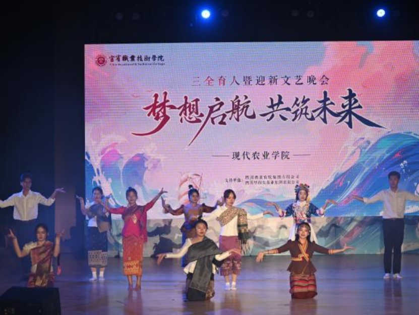 11月24日晚上,现代农业学院在共享区的大礼堂举办“梦想启航,共筑未来”三全育人暨迎新文艺晚会。副院长周黎军、四川德康农牧集团宜泸区域公司总经理李万奎、四川早白尖集团有限公司副总经理张炀出席。