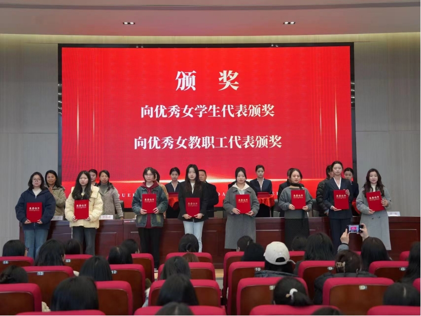江仁朝宣读了学校关于表扬李丹等49名优秀女教职工和雷琳琳等326名优秀女大学生的文件。他代表学校党政向全校女教职工和女同学们致以节日的问候,向获得表扬的师生表示衷心的祝贺。获得表扬的优秀女教职工、优秀女大学生代表在热烈的掌声中精神抖擞地从与会领导手中接过荣誉证书,领取属于自己的荣誉。