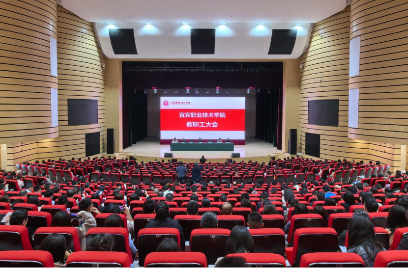 3月26日下午,宜宾职业技术学院全校教职工大会在共享区大礼堂召开。学校党委书记伍小兵主持会议并讲话,党委副书记、校长张学尽等在家校领导出席会议。