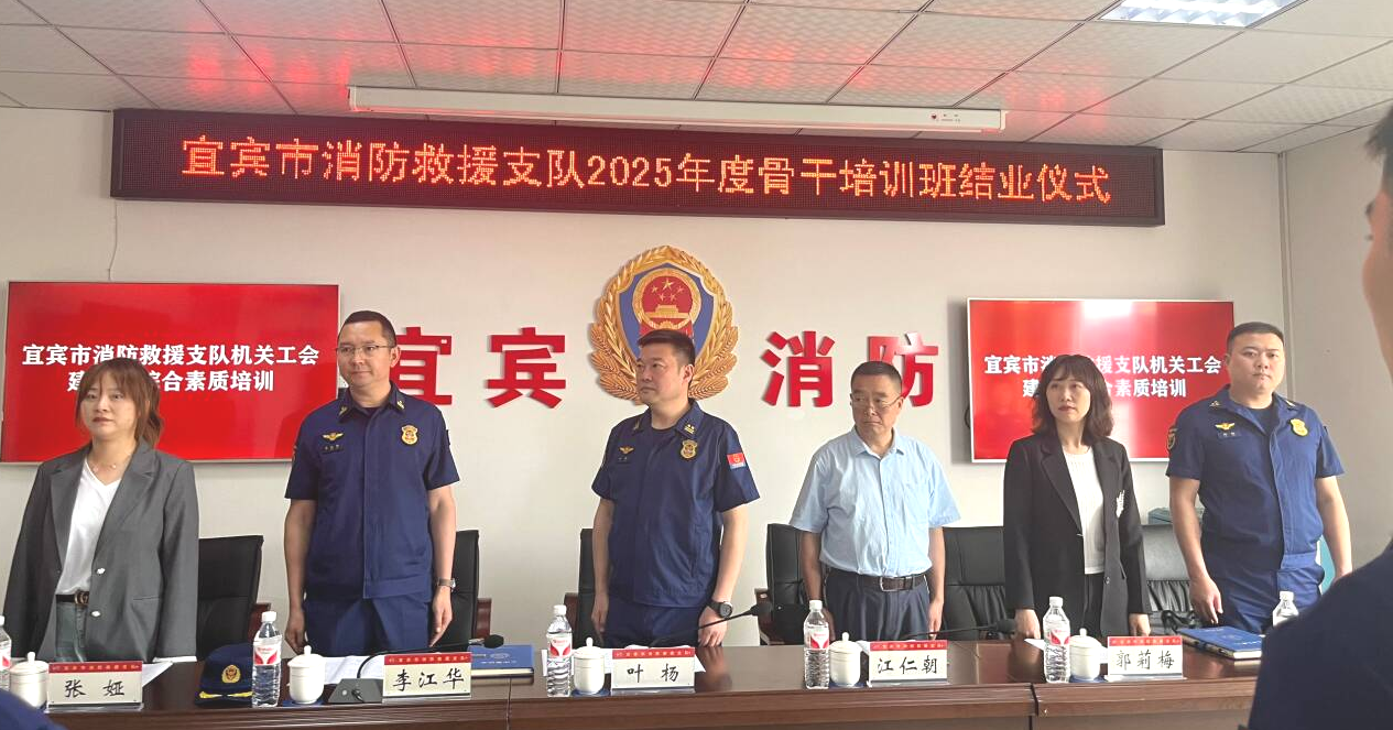 叶杨在总结讲话中表示,本次培训是支队深入贯彻习近平总书记关于应急管理的重要论述和总队、支队党委扩大会议精神的具体实践,更是着眼“全灾种、大应急”使命要求,为骨干队伍“淬火铸魂、砺器强能”的关键举措。他指出,此次培训以“思想淬炼”为先,全面筑牢参训学员“对党忠诚”的政治品格;以“专业赋能”为要,系统锤炼“赴汤蹈火”的实战化本领;以“使命担当”为责,深入涵养“竭诚为民”的服务初心。他勉励全体学员,要将培训成果转化为守护城市安全、服务人民群众的实际行动,在基层岗位上争当先锋标杆,在灭火救援、抢险救灾等急难险重任务中勇挑重担,以过硬素质彰显新时代消防救援队伍的责任与担当,为平安宜宾建设贡献更大力量。