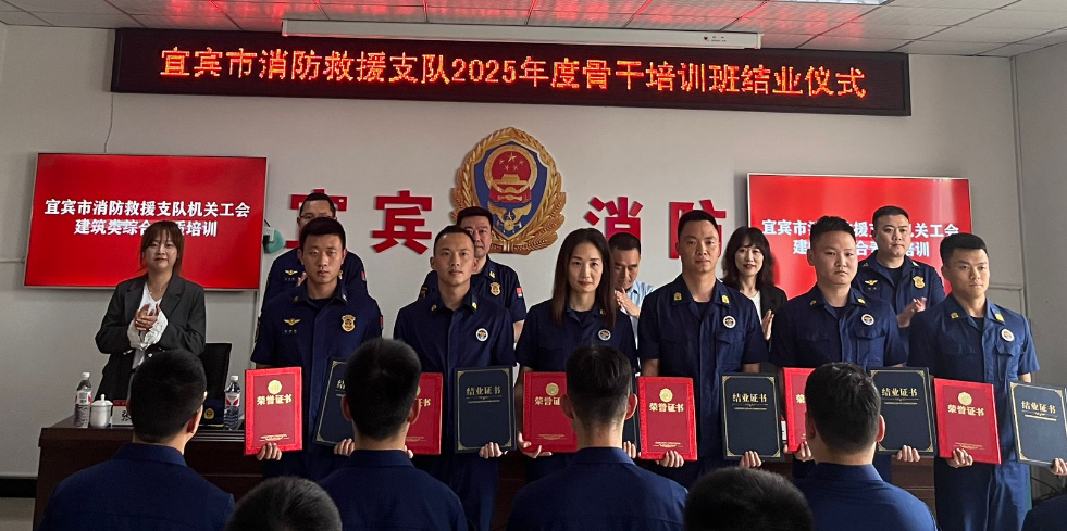 4月25日,由我校建筑与环境学院承办的宜宾市消防救援支队2025年度骨干培训班结业仪式在罗龙工业园区政府专职消防救援站举行。宜宾市消防救援支队党委书记、政治委员叶杨,我校党委常委、副校长江仁朝出席活动并讲话。