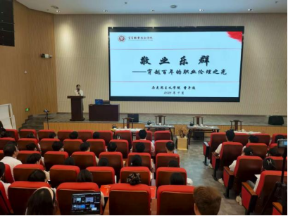 随后,马克思主义学院教师曹子逸带来了一堂以《敬业乐群——穿越百年的伦理之光》为题的黄炎培职业教育思想思政示范课。曹子逸老师以“敬业乐群”为核心,结合快递小哥宋学文、南宁铁路公安局刑事技术专家苏亚伟、大国工匠徐立平、中国科学院院士俞鸿儒等生动案例,深刻阐释了黄炎培职业教育精神在新时代的现实内涵与价值延续。