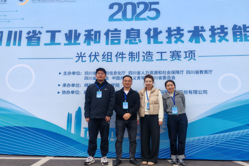 11 月 3 日,2025年四川省工业和信息化技术技能大赛光伏组件制造工赛项在绵阳职业技术学院圆满落幕。我校光伏专业教师王霏宇、孙敏组成的参赛团队,凭借扎实的专业功底、娴熟的实操技能和默契的协作配合,在激烈角逐中脱颖而出,最终斩获二等奖,充分展现了我校教师过硬的职业素养与业务能力。