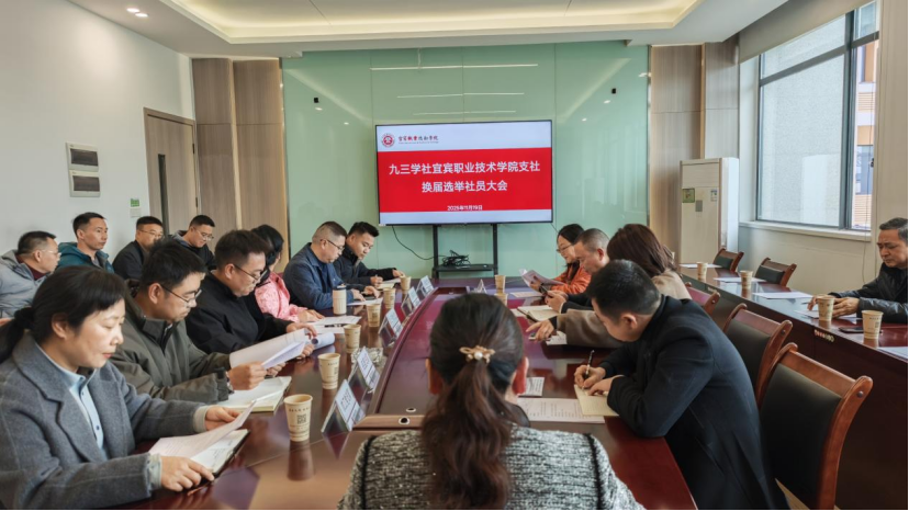 11月19日,九三学社宜宾职业技术学院支社社员大会顺利召开,圆满完成换届选举工作。九三学社宜宾市委会专职副主委李文仲、三级调研员罗红梅,学校党委常委、组织部部长陈敏出席会议。