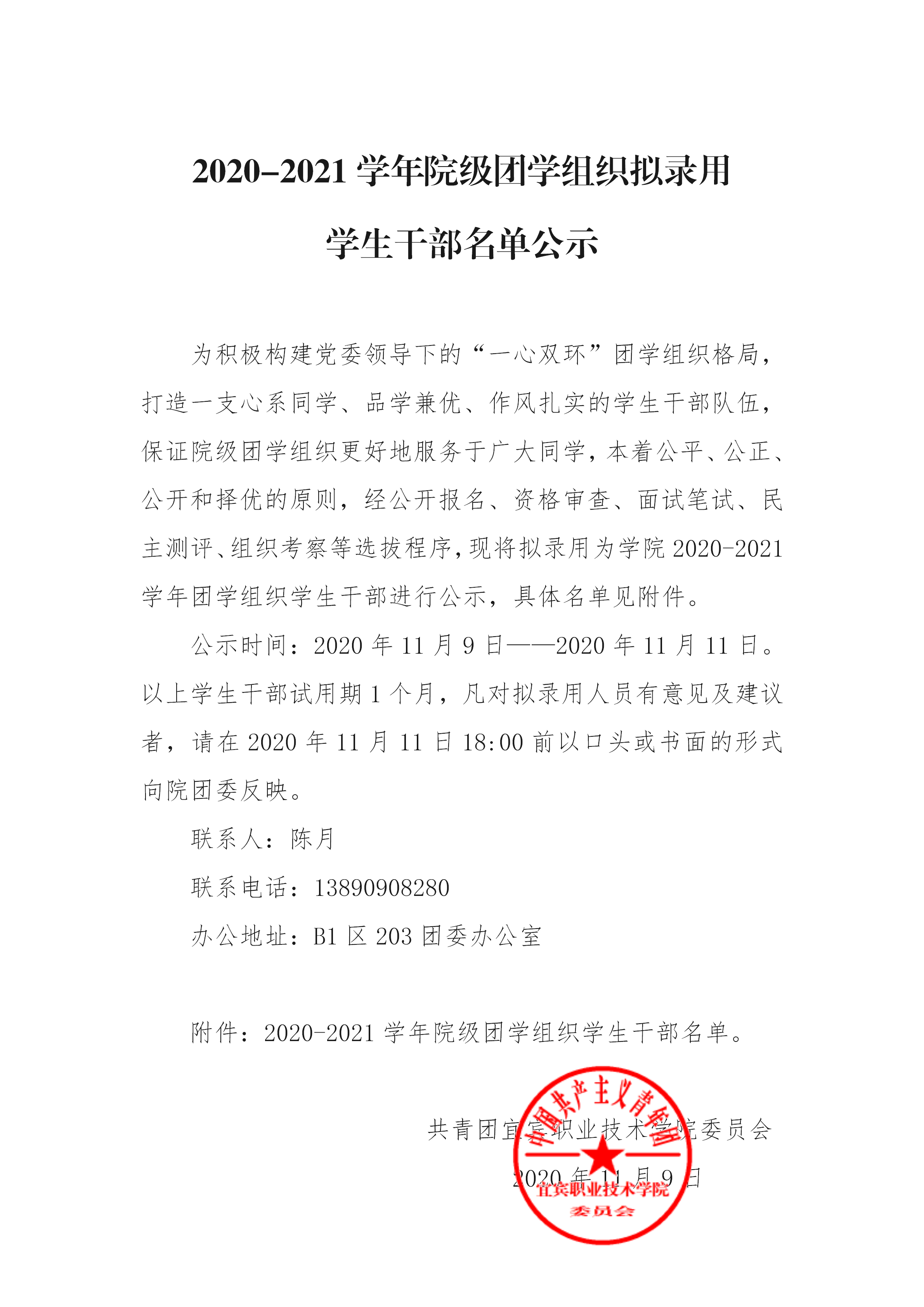 上一条:2020年后勤服务中心拟聘用驾驶员公示 下一条:宜宾职业技术学院2020-2021学年院级团学干部换届通知