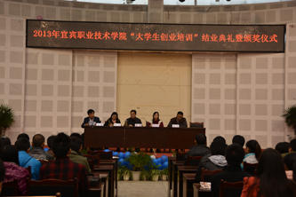 下午16:30,在学院学生活动中心,隆重举行2013年宜宾职业技术学院“大学生创业培训”结业典礼暨颁奖仪式。学院副院长张毅同志出席了会议,参加会议的还有宜宾市人力资源和社会保障局、宜宾市人才服务和就业促进局和我院有关部门的领导及培训班班主任。