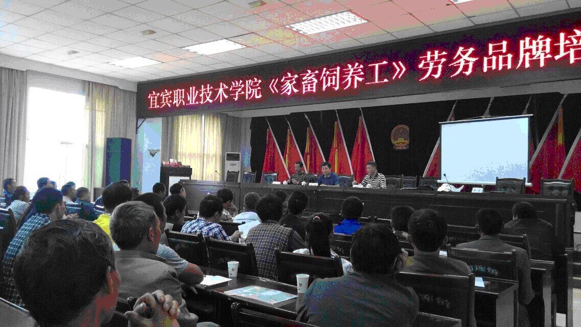 上午,宜宾市人力资源与社会保障局主办,生物与化工工程系承办的“2015年宜宾市《家畜饲养工》中级劳务品牌培训班”开班,在筠连镇政府六楼大会议室正式举行。宜宾市人社局农劳办曹正均、宜宾职业技术学院继续教育部副主任成洲、生物与化工工程系副主任李德立、筠连镇副镇长郝猛等领导以及来自筠连县筠连镇85名、腾达镇17名,兴文县13名共115名肉牛专业合作社骨干、肉牛养殖家庭牧场主、肉牛养殖大户及村级兽医站防疫员的学员参加了开班典礼。