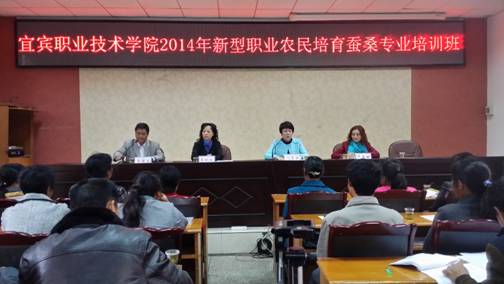 2014年10月18日,由宜宾职业技术学院承办的高县2014年新型职业农民培育工程蚕桑专业培训班在高县县委党校正式开班,共有来自高县罗场镇、庆岭等乡镇的蚕桑专业合作社50名学员参加了培训,我院副院长闫景丽、高县农业局副局长李晓玲等领导出席了开班仪式。