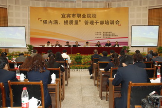 市教育局副局长柳廷根作了《提升软实力,再铸新辉煌》的报告,他在充分调查分析宜宾职业教育现状基础上,提出了强内涵、提质量的具体措施和步骤。