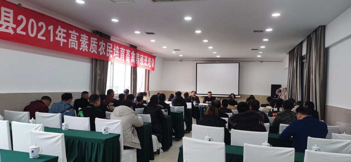 12月19日下午,由宜宾职业技术学院承担的筠连县2021年高素质农民培育畜禽养殖培训在宜宾市叙州区蓝天宾馆会议室举行,来自筠连县的畜禽养殖大户共40人参加了开班典礼。