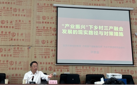 10月17日上午,宜宾市委党校教授、市首届干部教育名师、市乡村旅游研究会会长许察金,以《产业振兴下乡村三产融合发展的现实路径与对策措施》为主题的专题讲座。分别从外部环境变化、三产融合的价值意义、三产融合的形式问题进行逐项剖析,就三产融合发展所存在的问题把脉开方,提出面对宜宾农业产业融合层次低、效率低、收益少、渗透弱等问题,要坚持走内部融合与外部融合相结合;横向发展与逆向推进相结合;综合打造与精品工程相结合的路径。