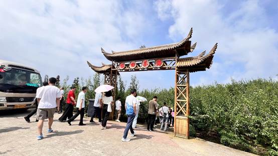 学员到达茵红李“母树群”、绿色防控示范及肥水一体化管理园区、水果交易市场等进行现场观摩。