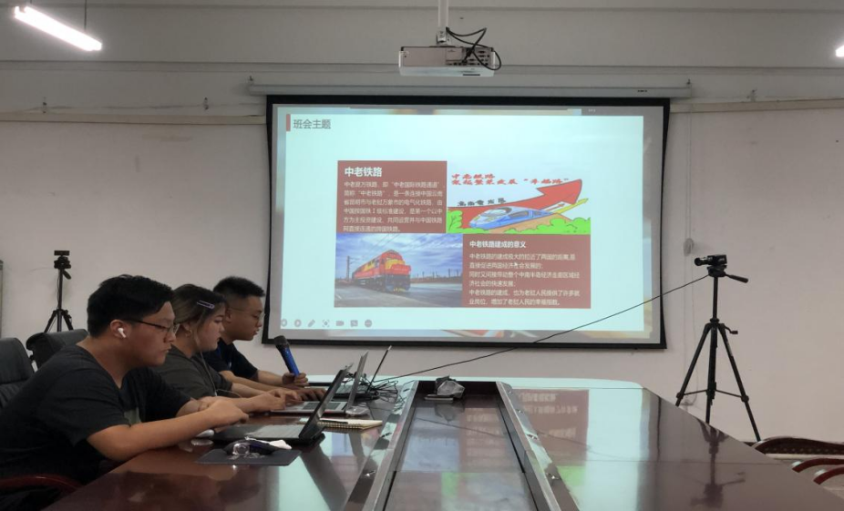 班主任李一兴从中老铁路的意义、中老铁路的建设、留学生所学专业对中老铁路建设的技术性支持、中老铁路通车后带给老挝农产品的好处、防诈骗安全教育指南五个方面进行了介绍。老挝留学生通过班会了解到中老铁路的建设难度是非常之大的,学生了解后感触良多,深知修建中老铁路的困难,也从中老铁路这项工程上深刻体会到了中国与老挝建交半个多世纪以来的高度互助互惠互信的全面战略合作伙伴关系。