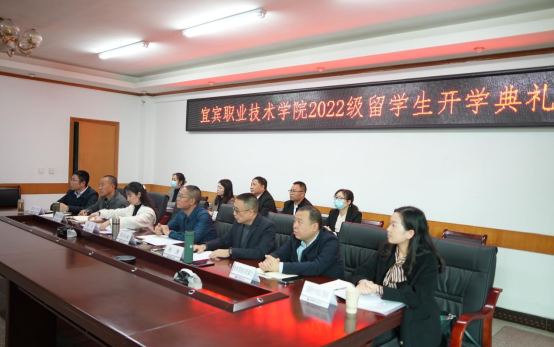 典礼开始前播放了宜宾市和学院的宣传简介视频,帮助留学生了解中国经济社会发展情况,了解宜宾市和宜宾职业技术学院。开学典礼由朱涛主持,他对2022级全体留学生表达了诚挚问候和热烈欢迎,感谢同学们选择留学中国、留学宜宾、留学宜宾职院。