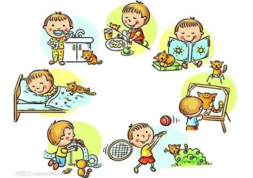 作息方面:制定每天作息时间表及内容,按照学校学习时间安排自己的学习、玩耍、运动、睡眠时间。每项活动时间可采用定时器控制,使目标明确,知道每天该干什么,养成时间观念。