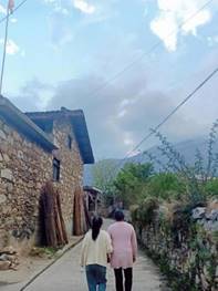 人力11901班贾祥露挽着母亲一起去转地(散步)