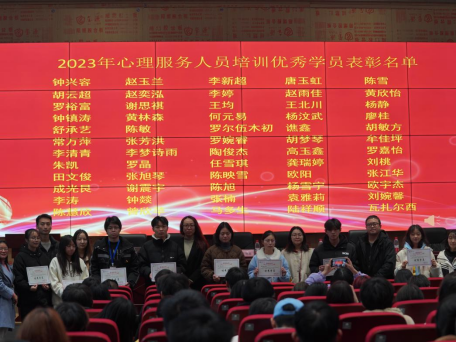 在培训结业仪式上,对本次培训中表现突出的优秀学员进行了表彰,既鼓励同学们更好的服务于同学,更激励全体培训学员在新的时代,展现心理服务人员的新作为。