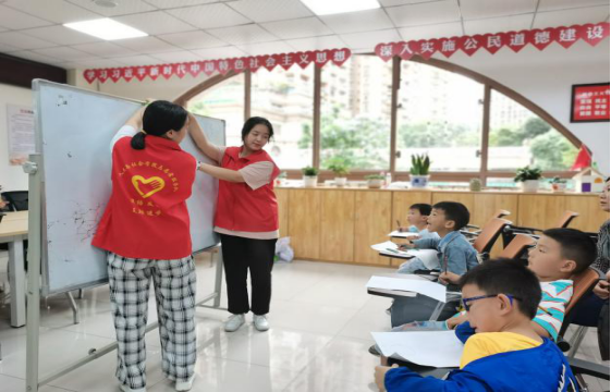 爱在金沙志愿者服务队每天下午18:30安排指定人员对金沙社区的学生进行一对一的各科作业辅导,辅导期间志愿者们会根据每个同学不同情况制定不同辅导计划,从而保障了他们的作业质量。每周六会开展绘画、舞蹈、书法、普通话一系列的兴趣班,培养了小朋友的兴趣爱好,丰富了他们的课余生活。