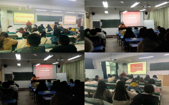 在班会课上,辅导员利用主题班会进行宣讲,使得党的十九届六中全会全覆盖。
