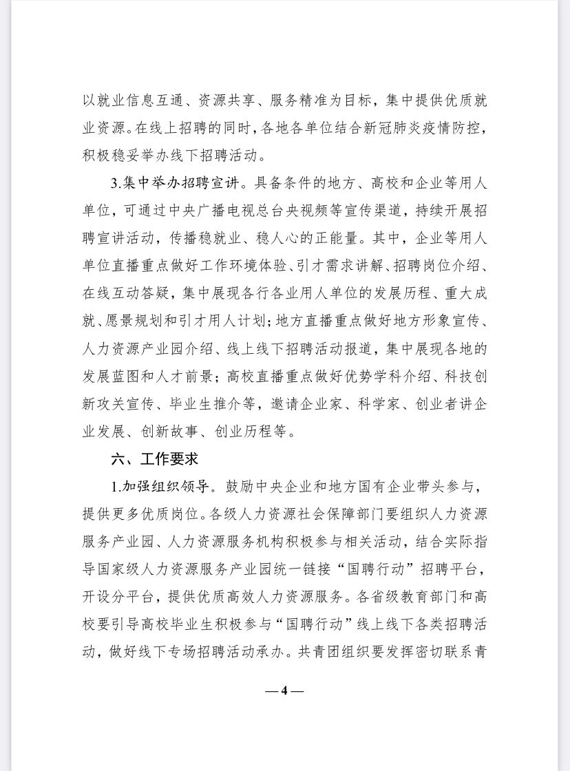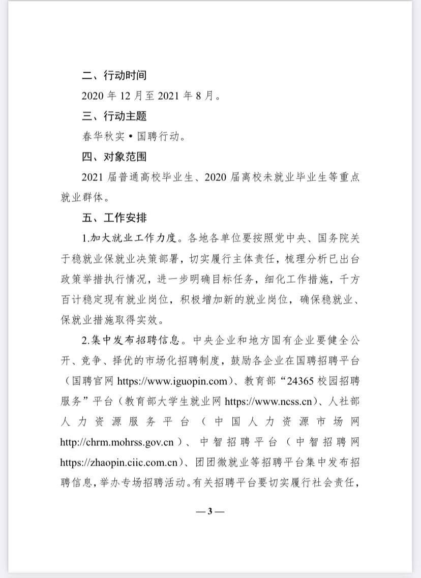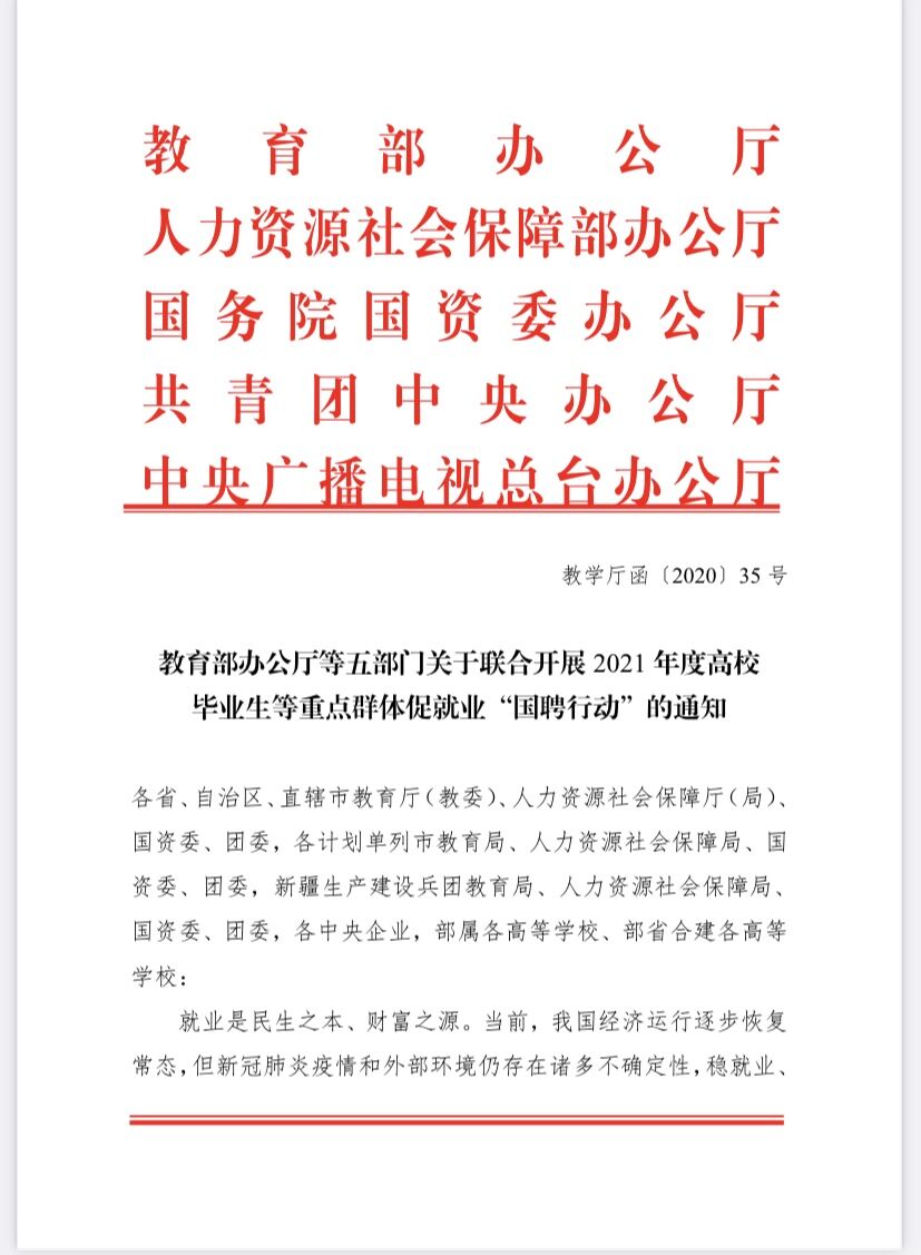 教育部办公厅等五部门关于联合开展2021年度高校毕业生等重点群体促就业“国聘行动”的通知
