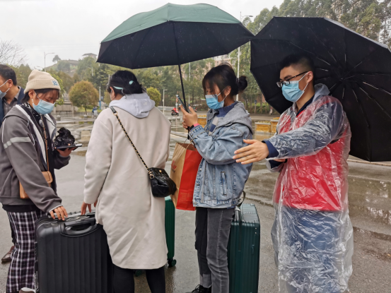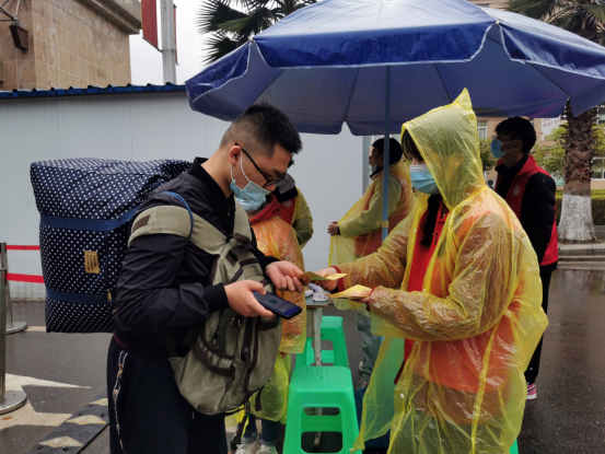蒙蒙细雨飘洒在雨衣上,积少成多顺着衣角滑落下来。为大家服务,志愿者们不怕辛苦的精神让返校的师生感受到了家人一般的温暖,将我院学雷锋志愿者的精神面貌展现的淋漓尽致。他们各尽职守,坚守在岗位上,为学院开学季疫情防控做出自己的贡献。(学雷锋志愿服务队供稿)