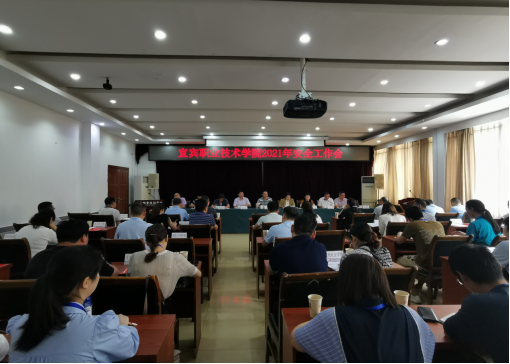 2021年5月13日,宜宾职业技术学院年度安全工作会在科苑宾馆三楼会议室召开。会议由党委常委、副院长江仁朝主持。学院党委副书记、院长伍小兵同志出席并作重要讲话。各部门、二级学院党政负责人,学生处、保卫处、团委、二级学院相关人员及义务安全联络员、义务消防员共80余人参加会议。