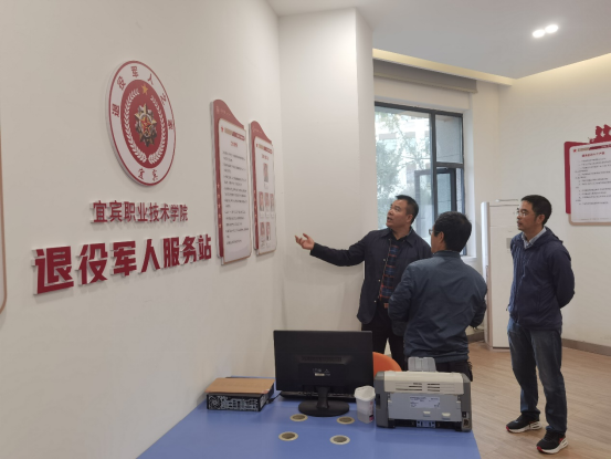 为进一步关心关爱退役军人,及时为退役军人排忧解难,充分发挥退役学生 “退伍不褪志”的军人本色, 2024年10月10日上午,宜宾市退役军人事务局党组成员、副局长欧道兵一行莅临我院调研指导退役军人服务站工作。学院安全保卫部(武装部)部长李强率队接受调研。