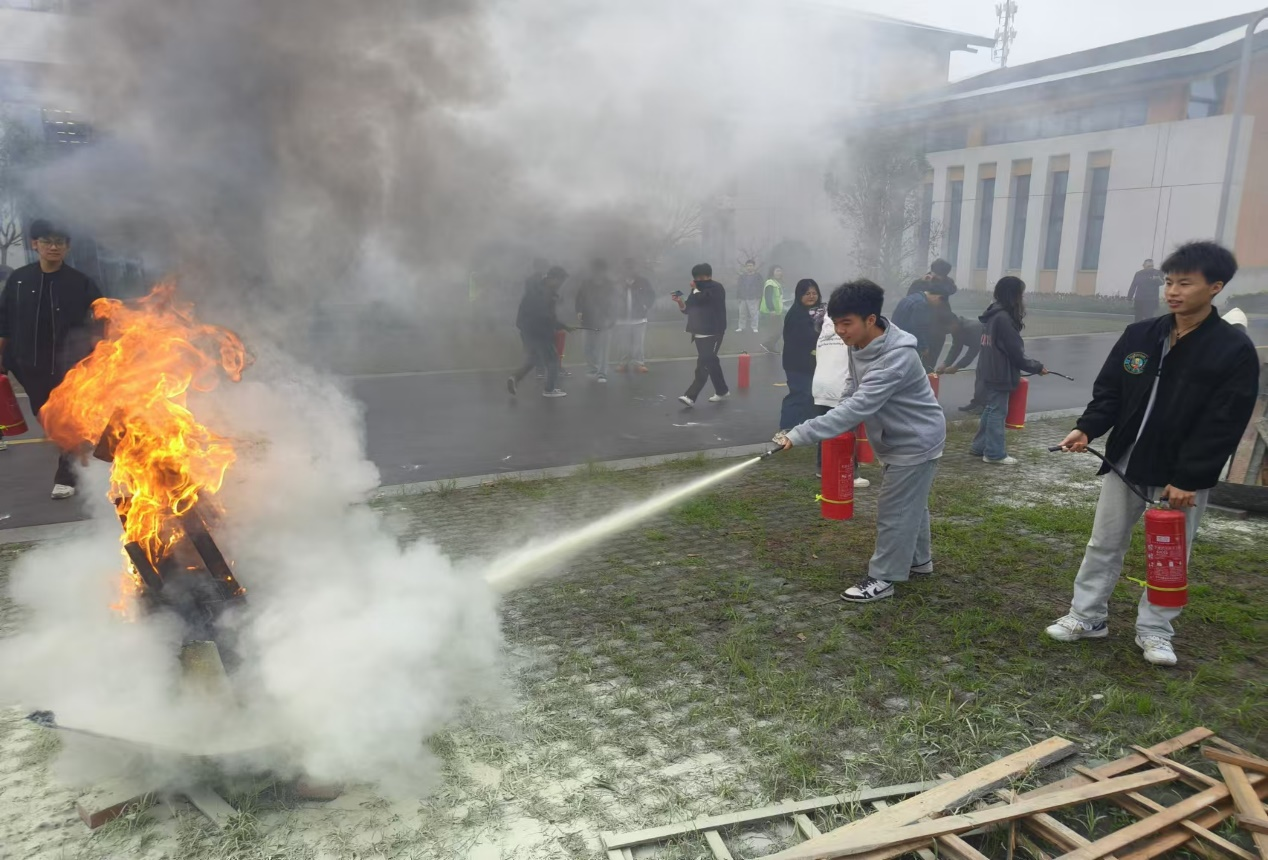 学院消防重点部门和各二级学院的消防安全负责人、义务消防员、学生代表,以及基建后勤处和四川新灰领实业有限公司的工作人员,中保恒杰物业公司寝室管理员和安保人员共计200余人参加了培训。