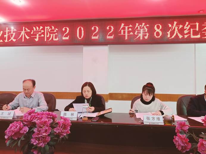 1027日下午,2022年第八次纪委工作会在办公楼会议室426召开。会议由党委副书记、纪委书记陈林主持,纪委委员、纪检监督员及各二级学院纪检委员共25人参加会议。